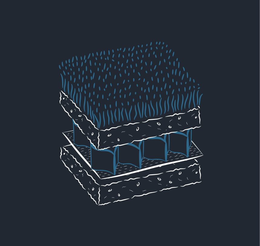 Технология укладки геосетки на откосы достаточно проста — материал должен располагаться в верхнем слое почвы, чтобы сдержать ее перемещение. Для улучшения сцепных свойств и повышения надежности такой конструкции может использоваться дополнительный слой геотекстиля — предпочтение отдают нетканому иглопробивному материалу.